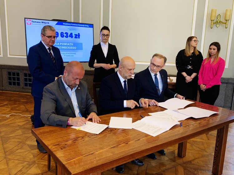 Łączna kwota dotacji dla zachodniopomorskich gmin i powiatów na budowę, przebudowę i remont dróg lokalnych w ramach Rządowego Funduszu Rozwoju Dróg wyniesie w tym roku prawie 100 500 000 zł. Powiat Szczecinecki otrzyma 50% dofinansowanie na realizację dwóch zadań. 4 maja w delegaturze Zachodniopomorskiego Urzędu Wojewódzkiego w Koszalinie podpisano stosowne umowy.