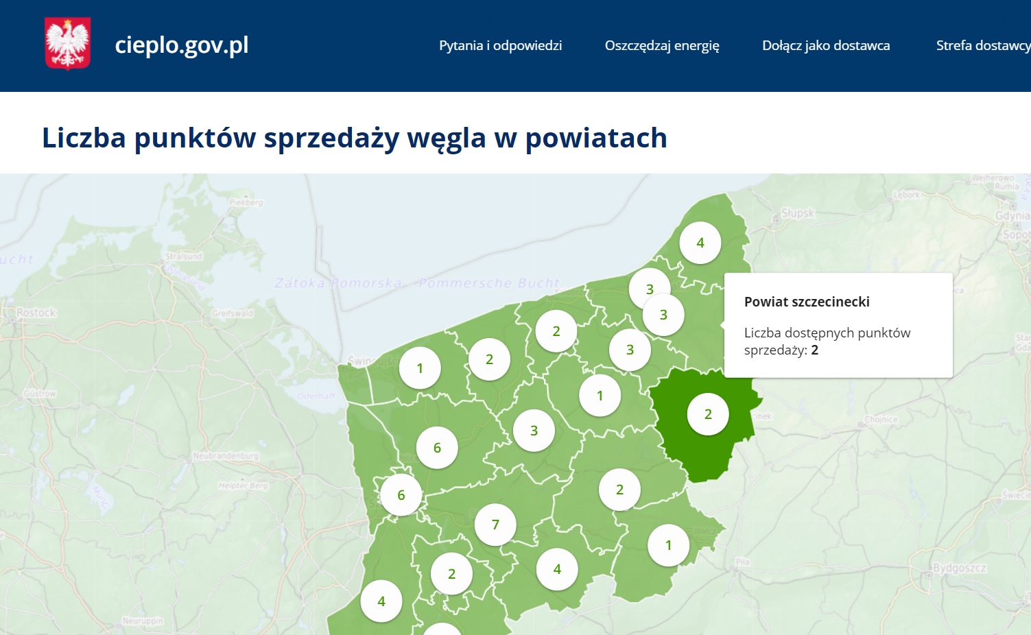 Punkty sprzedaży węgla w powiatach