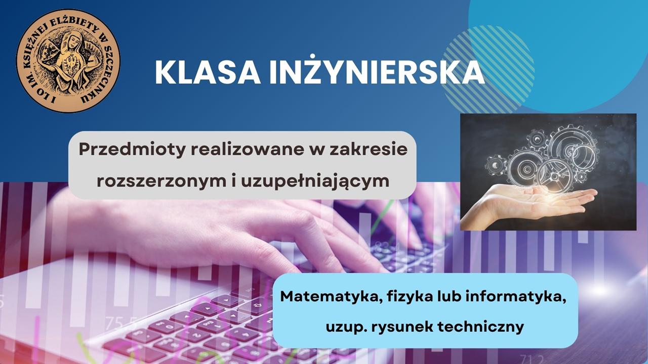 Klasa dedykowana uczniom o umysłach ścisłych, pasjonatom technologii, matematyki i informatyki. Przedmioty realizowane w zakresie rozszerzonym i uzupełniającym: – Matematyka – Fizyka lub informatyka – Rysunek techniczny