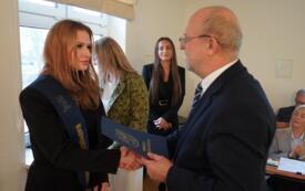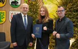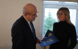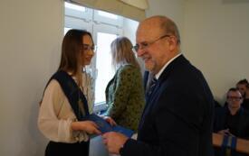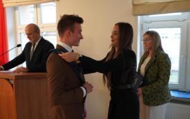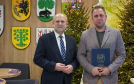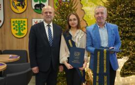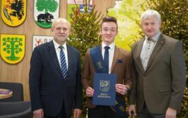 Sesję rozpoczął jeden z najbardziej wyczekiwanych punktów obrad – starosta Krzysztof Lis uhonorował najlepszych uczniów, studentów oraz zawodników, doceniając ich imponujące osiągnięcia w nauce, kulturze i sporcie. Powiat Szczecinecki od wielu lat współpracuje z firmą Kronospan, a jednym z najważniejszych elementów tej współpracy są klasy patronackie funkcjonujące w Zespole Szkół Technicznych w Szczecinku. Dla najlepszych uczniów tej szkoły Kronospan Polska Sp. z o.o. ufundował stypendia, które – w asyście dyrektor placówki – wręczył HR menedżer firmy, Jakub Piniarski.