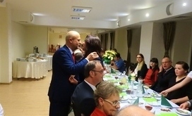 Do zebranych, słowa modlitwy skierował ojciec Arkadiusz Sojka, proboszcz parafii pw. Ducha Świętego, a zaraz potem uczestnicy wigilijnego spotkania podzielili się opłatkiem i zasiedli do wspólnej kolacji, złożonej z tradycyjnych potraw świątecznych.